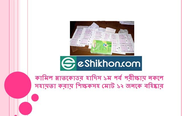 কামিল স্নাতকোত্তর হাদিস ১ম পর্ব পরীক্ষায় নকলে সহায়তা করায় শিক্ষকসহ মোট ১২ জনকে বহিষ্কার