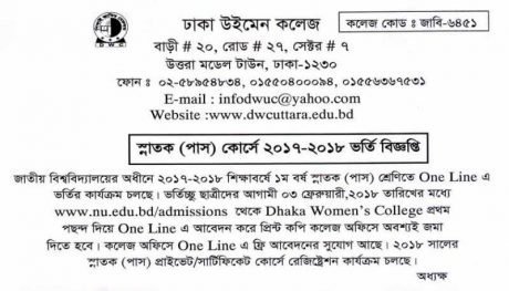 ঢাকা উইমেন কলেজে স্নাতক কোর্সে ভর্তির বিজ্ঞপ্তি প্রকাশ