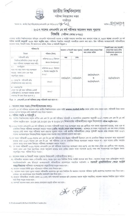 ২০১৭ সালের এলএলবি ১ম বর্ষ পরীক্ষার আবেদন ফরম পূরণের বিজ্ঞপ্তি