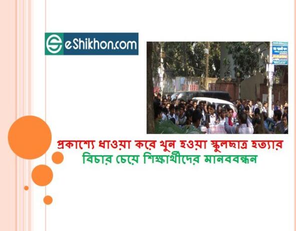 প্রকাশ্যে ধাওয়া করে খুন হওয়া স্কুলছাত্র হত্যার বিচার চেয়ে শিক্ষার্থীদের মানববন্ধন