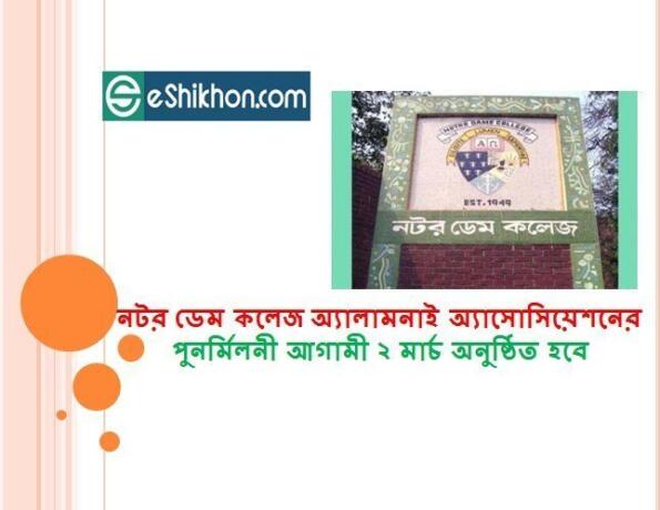 নটর ডেম কলেজ অ্যালামনাই অ্যাসোসিয়েশনের পুনর্মিলনী আগামী ২ মার্চ অনুষ্ঠিত হবে