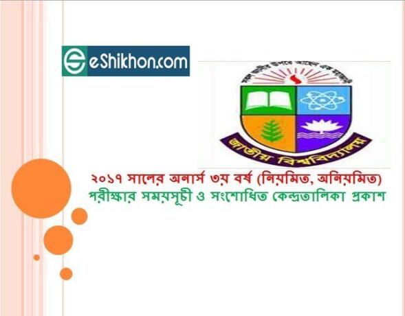২০১৭ সালের অনার্স ৩য় বর্ষ (নিয়মিত, অনিয়মিত, গ্রেড উন্নয়ন) পরীক্ষার সময়সূচী ও সংশোধিত কেন্দ্রতালিকা প্রকাশ