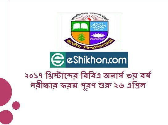 বিবিএ অনার্স ২০১৭ খ্রিস্টাব্দের ৩য় বর্ষ পরীক্ষার ফরম পূরণ শুরু