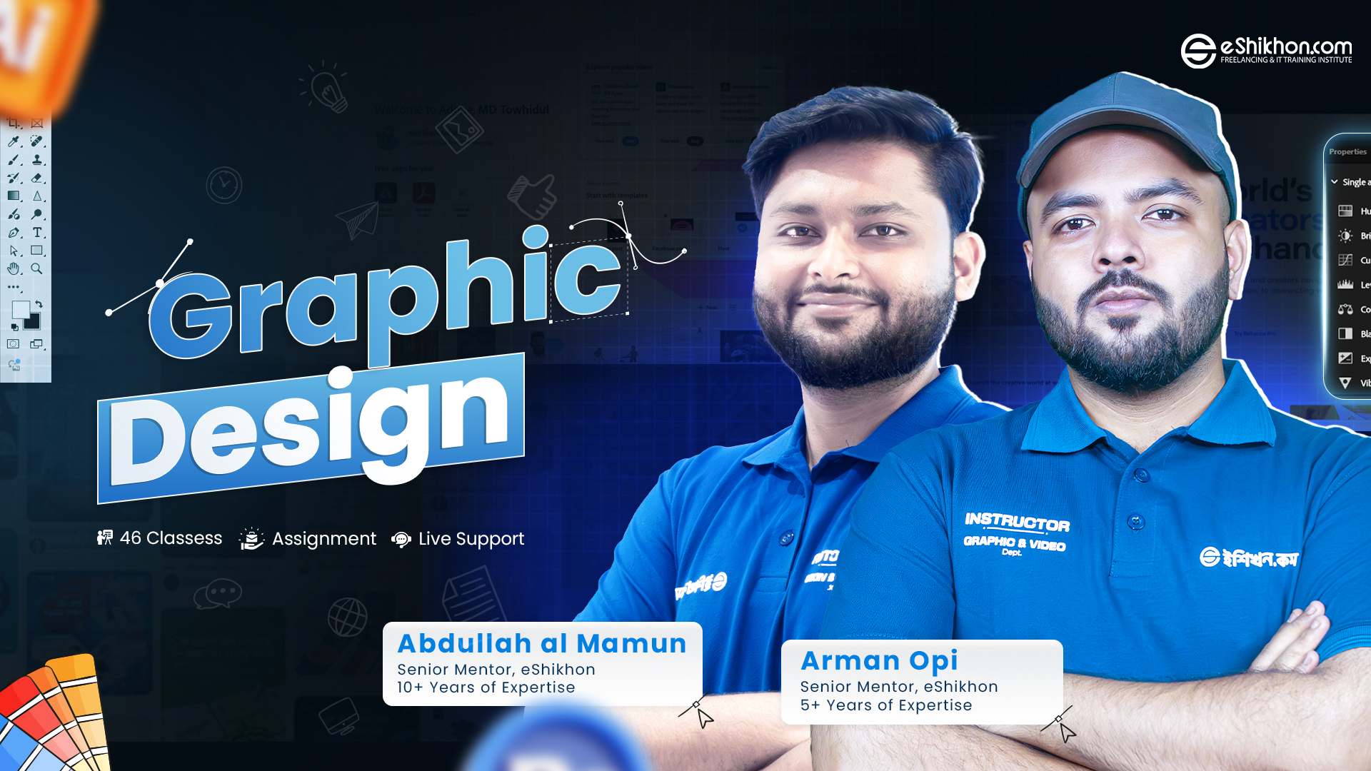 Thanks to eshikon and my instructor Arman Uddin Oppi Bhai for initially guiding my graphic design journey. Thanks to eshikhon for appointing someone like Arman Uddin Oppi as a teacher. If I don’t have the knowledge to talk about Oppi brother. I want to say that from this small knowledge. One of the best teachers I have ever met. whose teaching method is of another level. He explains every project well from start to finish. He reviewed our assignments so well and gave so much valuable guidance which I think will help me a lot in my future journey. And he is very friendly. I learned a lot from this course and want to practice and learn more. I enjoyed this course tremendously. Thanks again eshikhon and Oppi Bhaiya.