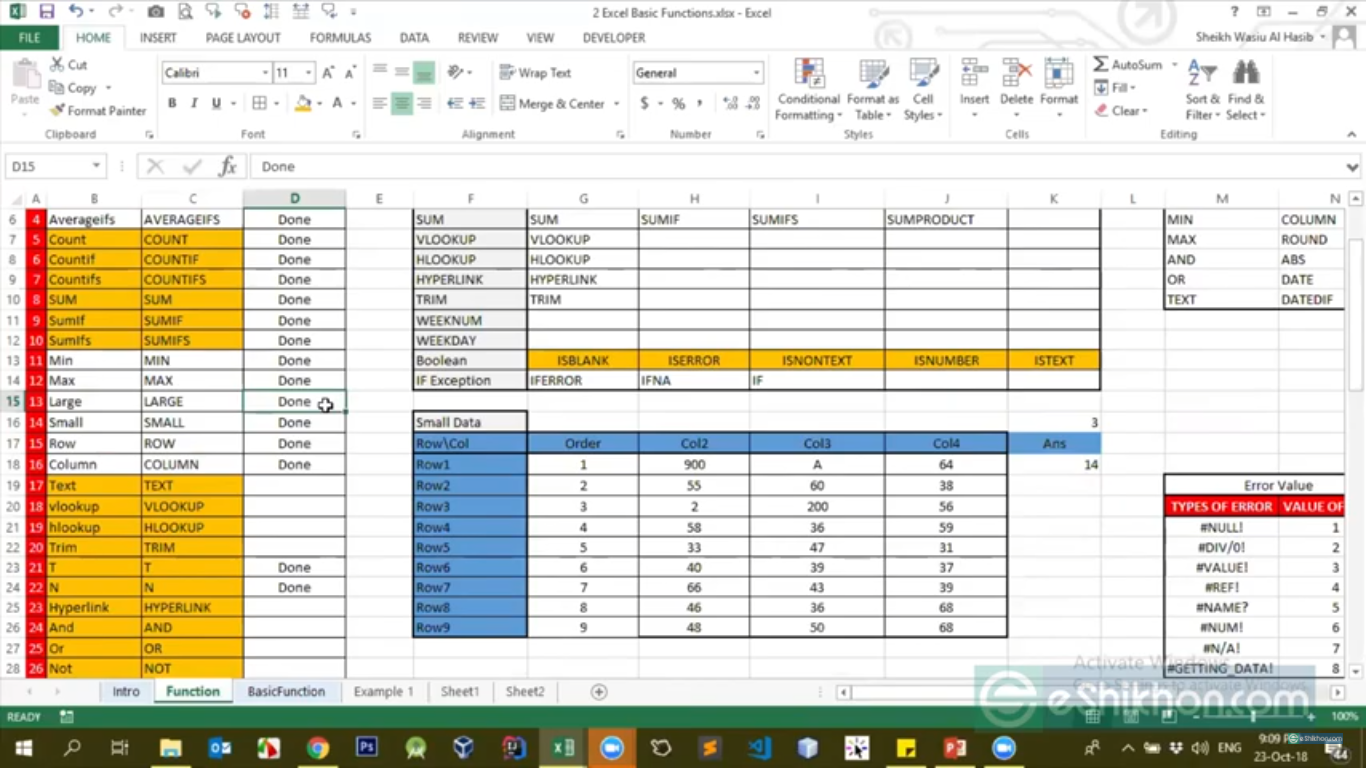 – Basic Function( Average, Sum, Sumif, Sumifs, Count, Countif, Counties)